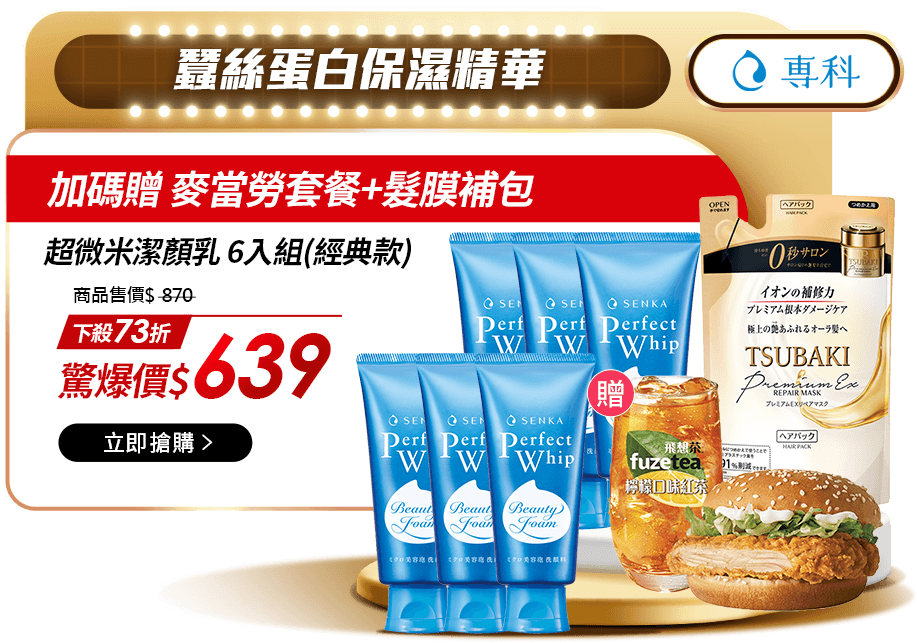 優惠商品數量有限,售完為止。本廣告活動頁商品規格、顏色、價位、贈品如與購物車不符,以購物車標示為準